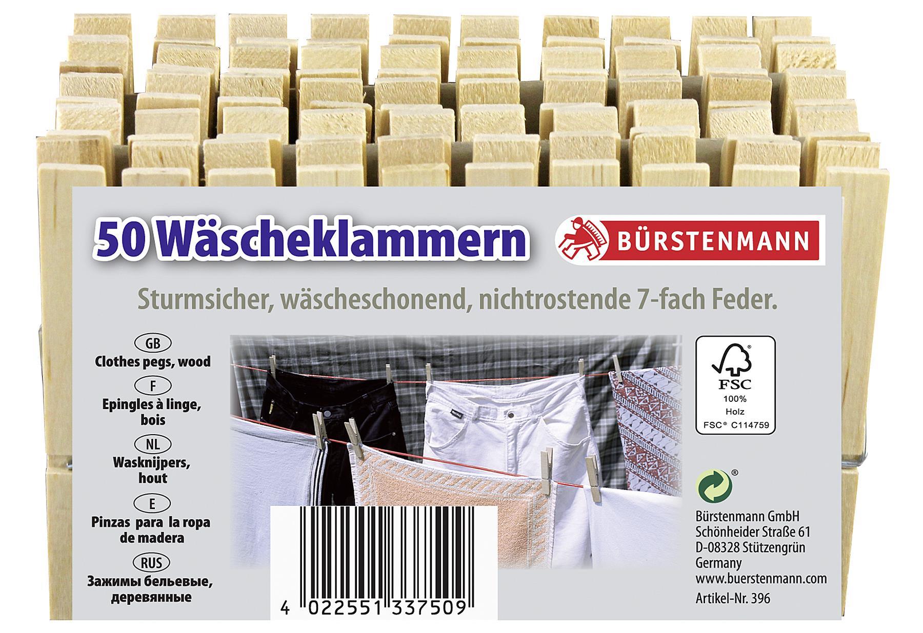 BÜRSTENMANN Wäscheklammer Holz m. nichtrostender Metallfeder 7cm 50 Stück rnLieferumfang: 6 VPE