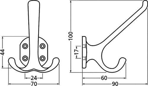Zweifachhaken · Aluminiumguss silberfarbig eloxiert · 4 Befestigungslöcher